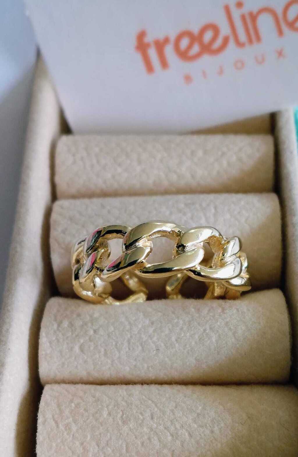 Disponível nas versões dourado e prateado, esse anel traz o formato de corrente, um detalhe que está em alta e adiciona um toque contemporâneo e sofisticado ao seu visual. O tamanho regulável é ideal para quem busca versatilidade e ajuste perfeito.